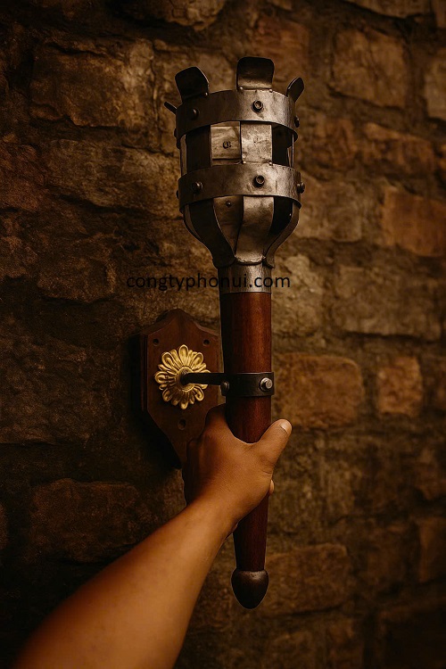 Trong không gian nội thất mang phong cách cổ điển hoặc trung cổ, cây đuốc điện là một điểm nhấn hoàn hảo, mang đến vẻ đẹp mạnh mẽ,